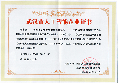 武漢市人工智能企業(yè)證書